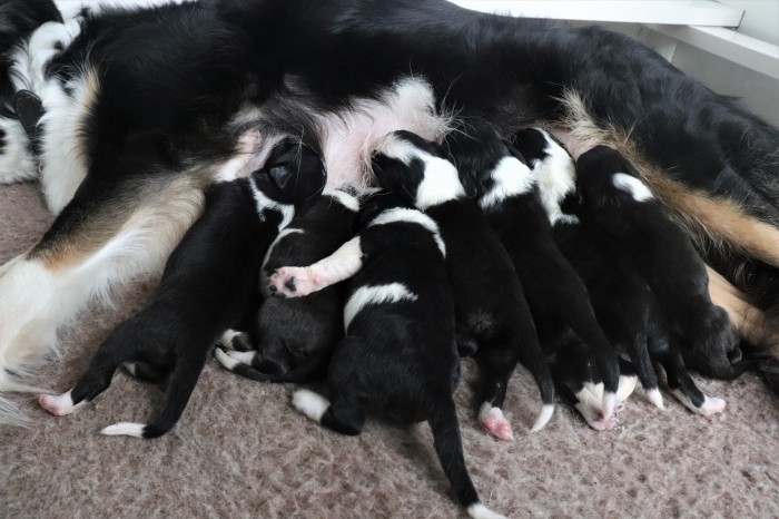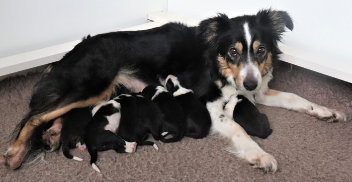 - 14:31 uur - teef - 290 gram - zwart-wit - Steady Cherryborders Yfke - roepnaam: Jet.