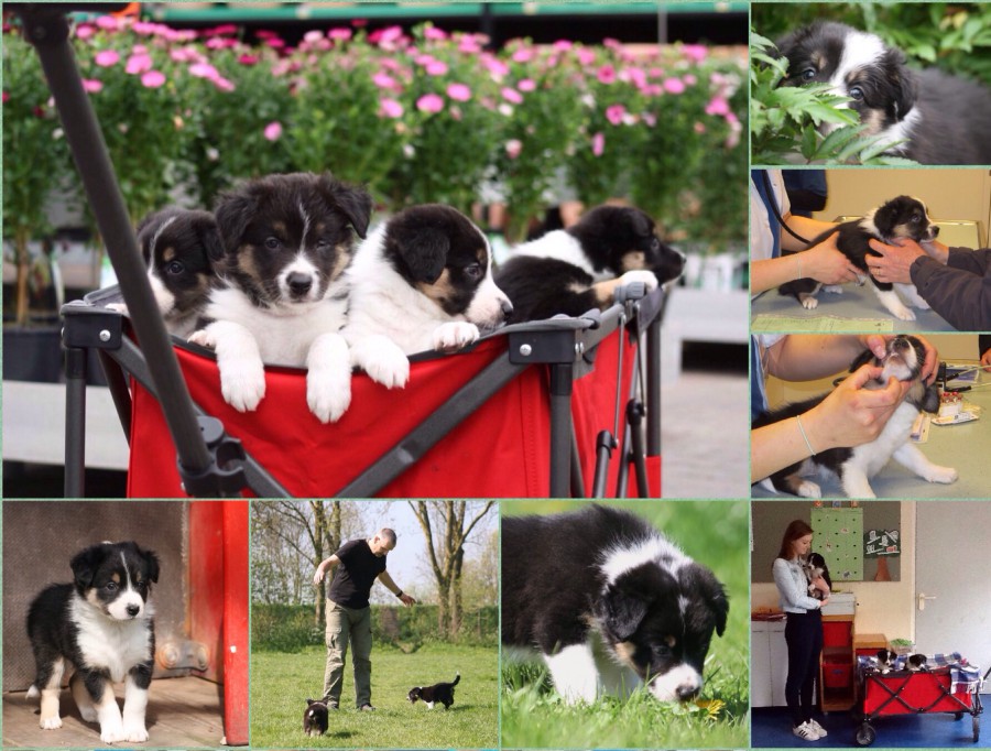 De eerste keer naar de dierenarts en de socialisatie van de pups; o.a. naar het tuincentrum, buitenspelen en mee naar school!