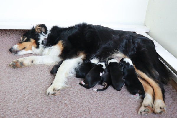 Mealla is bevallen van 6 pups: 1 teefje en 5 reutjes.