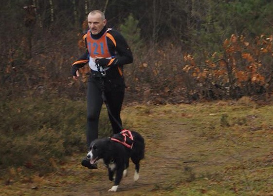 Eerste kennismaking met een andere vorm van hondensport: canitrail, 10 km. rennen door het bos.