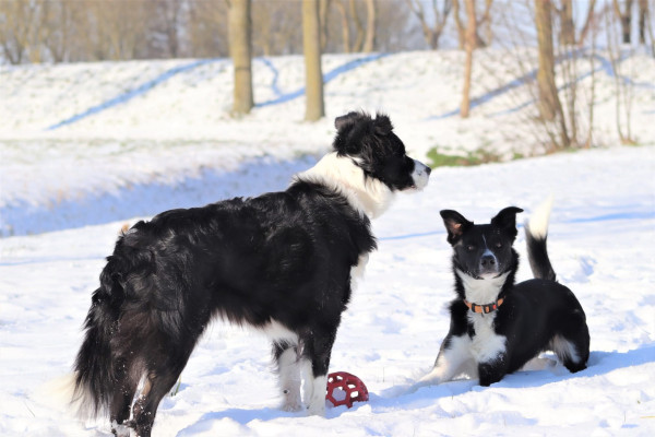 Thuis, in onze roedel, past Tibby zich makkelijk aan en speelt graag met halfzusje Laoise.