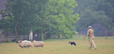Aangezien we Caithy de aanlegtest van de BCCN (Border Collie Club Nederland) wilden laten afleggen, ging Jan met haar schapendrijven.